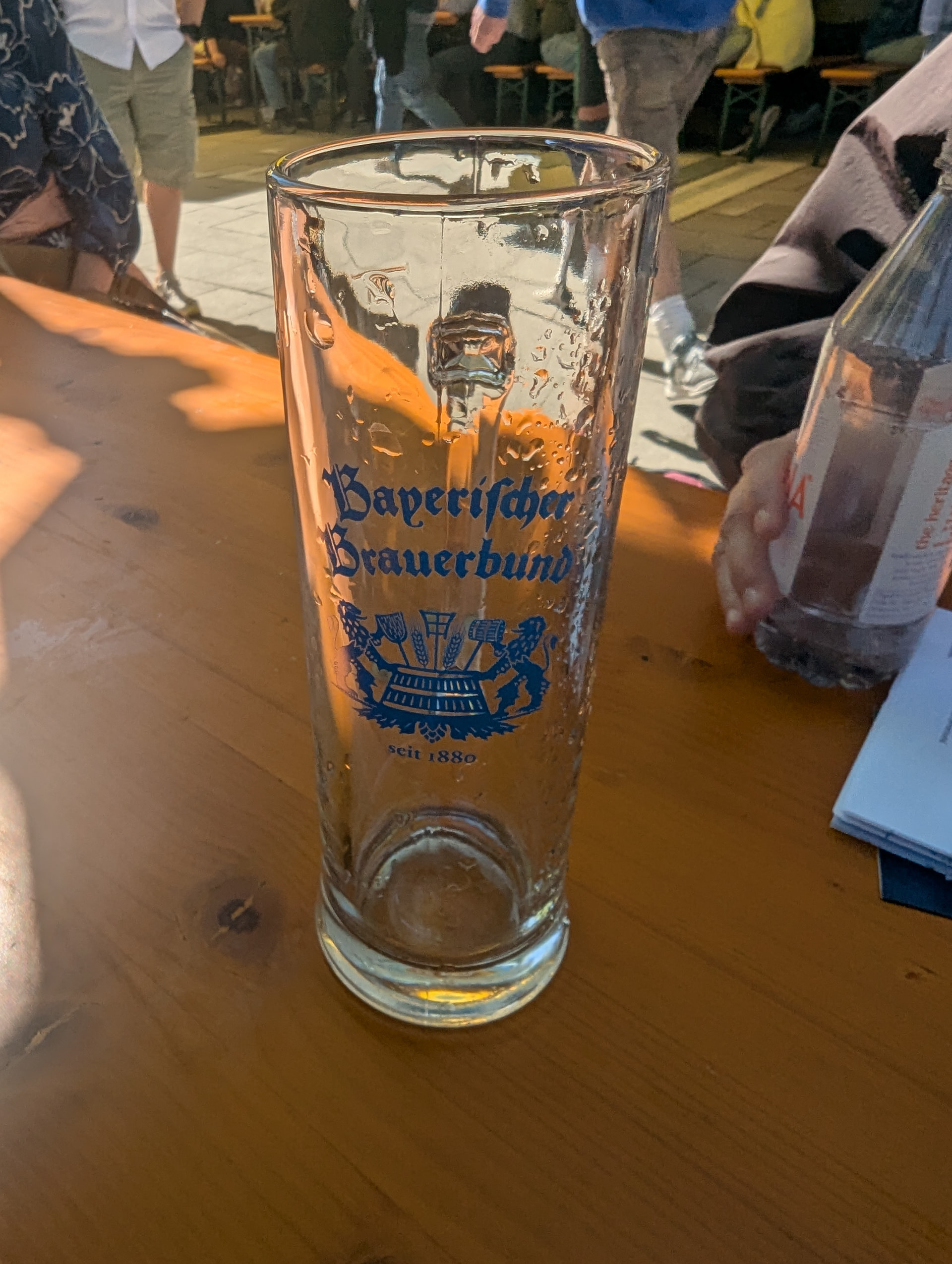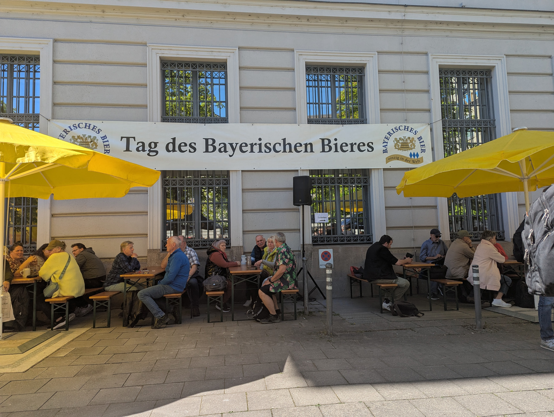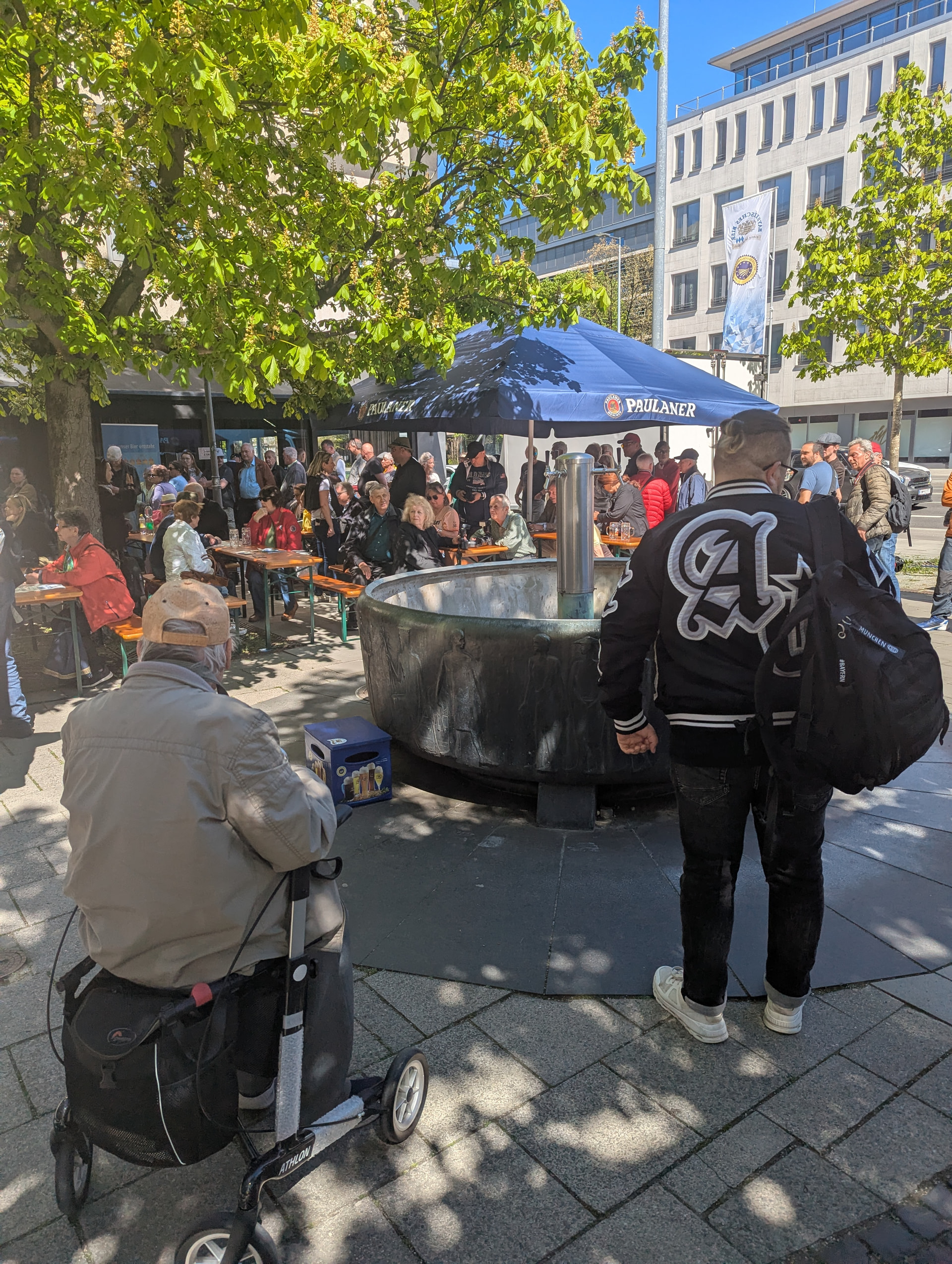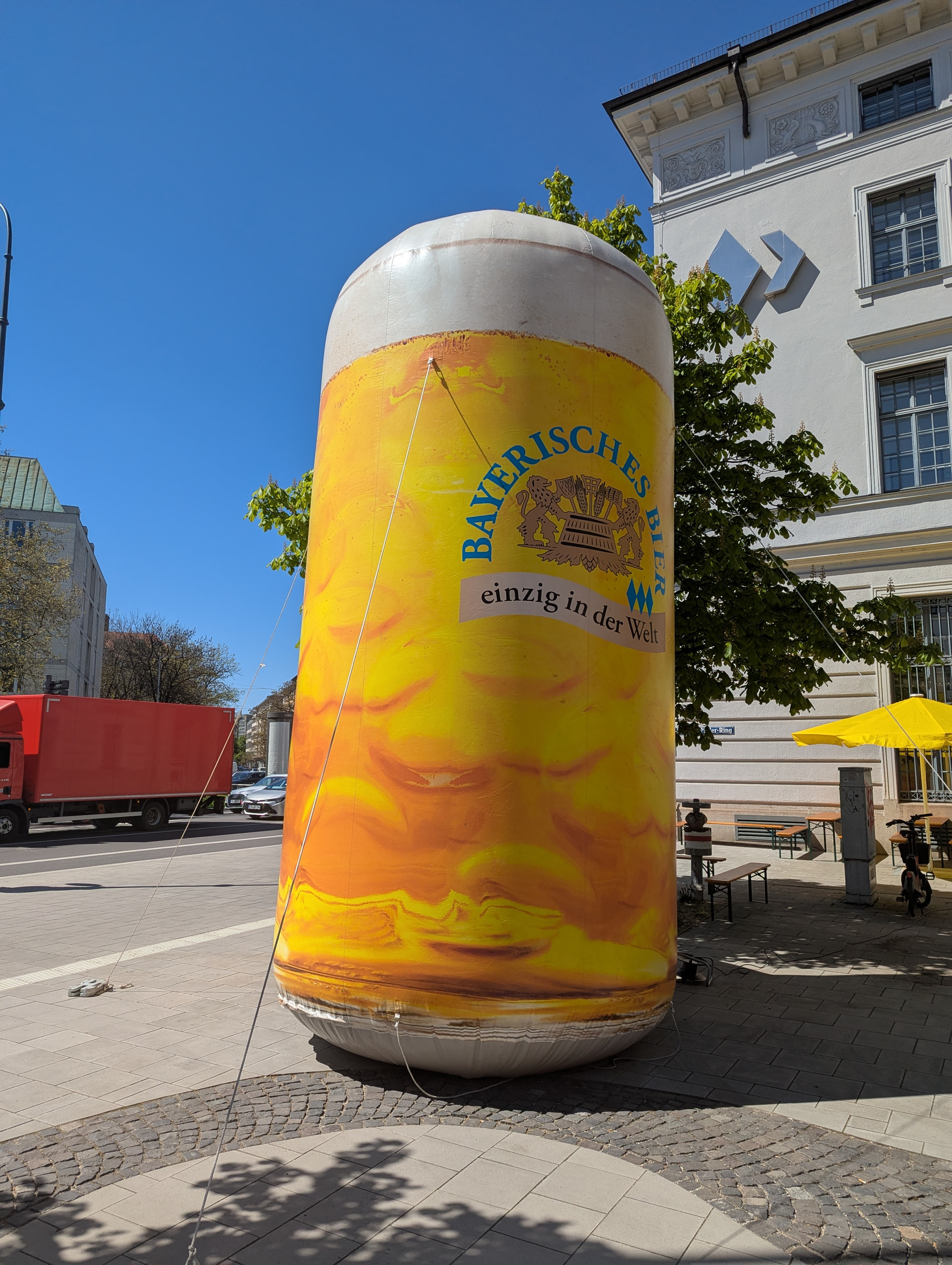 Malheureusement, je ne pourrai être avec vous ce soir, mais j’y serai en pensées! Le 23 Avril 1516, la loi sur la pureté de la bière, le Reinheitsgebot allemand était approuvée. Aujourdhui à Munich, j’ai pu célébrer la journée du souvenir du Reinheitsgebot en live! Fontaine de bière, qui à 15h16 tappant, a fourni 1000L de bière gratuite (Helles, Dunkel ou Weissbier), premier arrivé premier servi. Très mémorable comme fête!